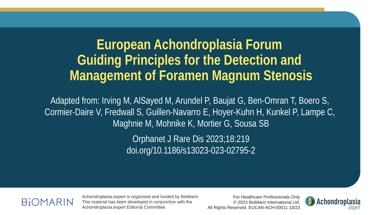 Irving M, AlSayed M, Arundel P, Baujat G, Ben-Omran T, Boero S, Cormier-Daire V, Fredwall S, Guillen-Navarro E, Hoyer-Kuhn H, Kunkel P, Lampe C, Maghnie M, Mohnike K, Mortier G, Sousa SB Orphanet J Rare Dis 2023;18:219