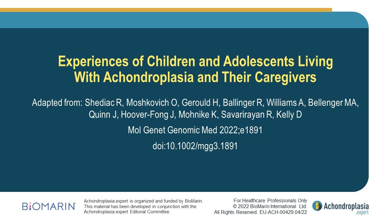 ACH leads to significant multisystem complications across the lifespan, which may affect the HRQoL of individuals and families living with the condition. It is important to understand current experiences within ACH communities in order to improve the quality of care of affected individuals, and to inform clinical practice guidelines. This qualitative study aimed to describe the HRQoL of children and adolescents with ACH and their caregivers.