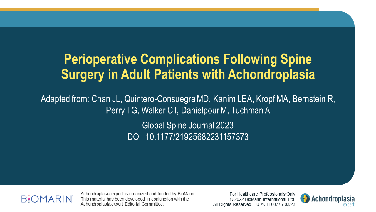 Importantly, findings showed adults with achondroplasia undergoing surgery chronologically later in the series were at a decreased risk for complications, suggesting surgeon experience may be a key factor. The potential for adverse surgical events should be considered when evaluating patients for spinal surgery.