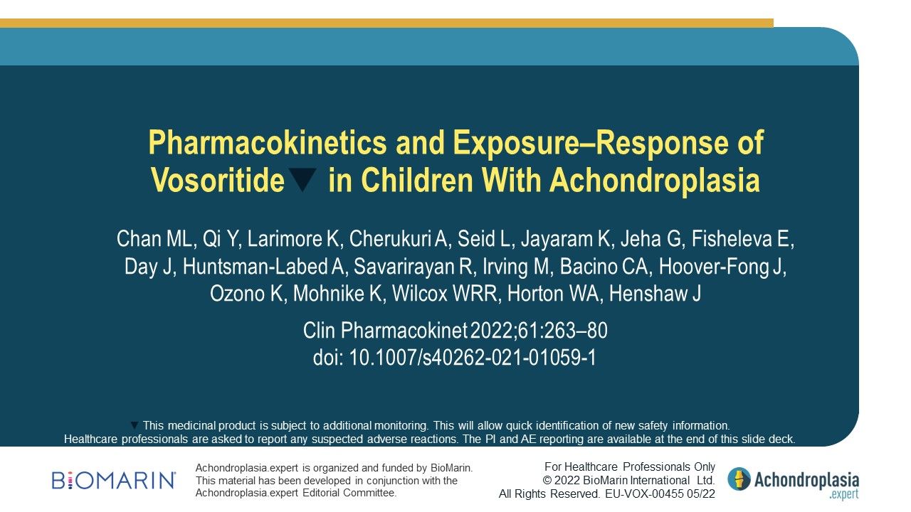 Chan ML, Qi Y, Larimore K, Cherukuri A, Seid L, Jayaram K, Jeha G, Fisheleva E, Day J, Huntsman-Labed A, Savarirayan R, Irving M, Bacino CA, Hoover-Fong J, Ozono K, Mohnike K, Wilcox WRR, Horton WA, Henshaw J Clin Pharmacokinet 2022;61:263–80 doi: 10.1007/s40262-021-01059-1