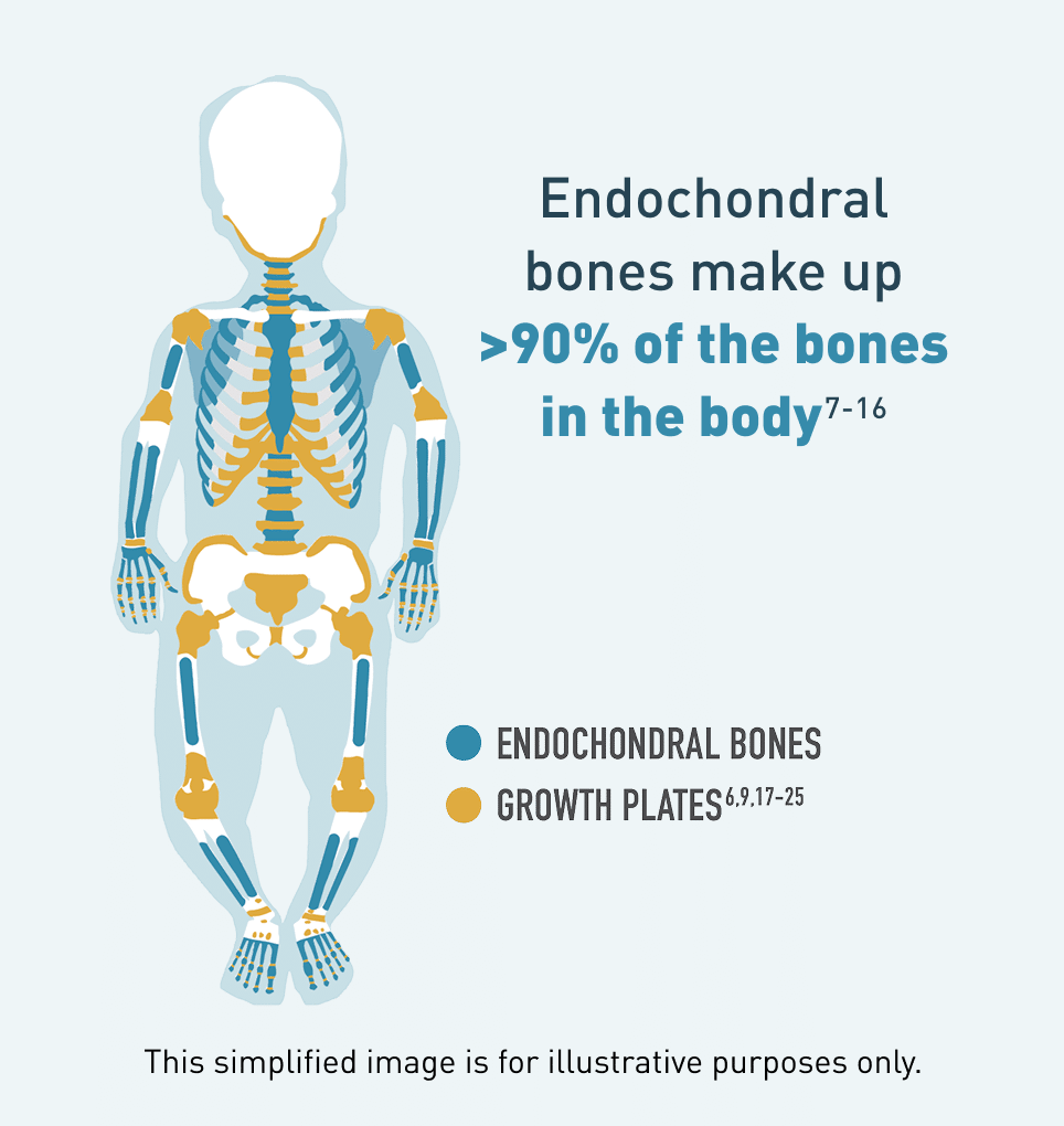 Achondroplasia is a rare genetic condition in which endochondral bone growth, the process of replacing cartilage with bone, is inhibited at the growth plates.1,3,5,6