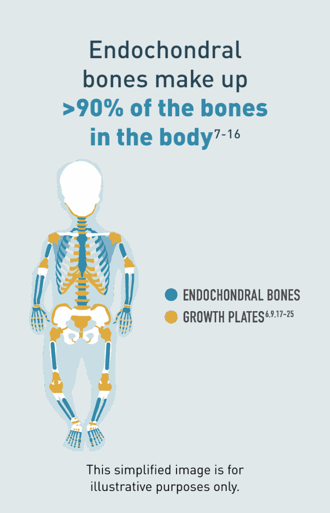 Achondroplasia is a rare genetic condition in which endochondral bone growth, the process of replacing cartilage with bone, is inhibited at the growth plates.1,3,5,6