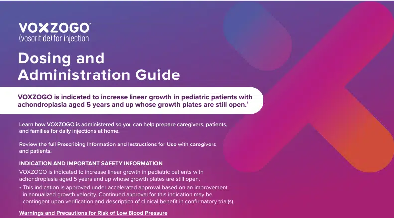 VOXZOGO® (vosoritide) is indicated to increase linear growth in pediatric patients with achondroplasia and open growth plates.