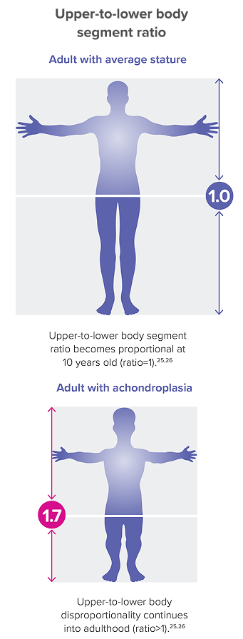 Inhibited endochondral bone growth leads to distinct characteristic features such as reduced and disproportionate growth.1,2,23