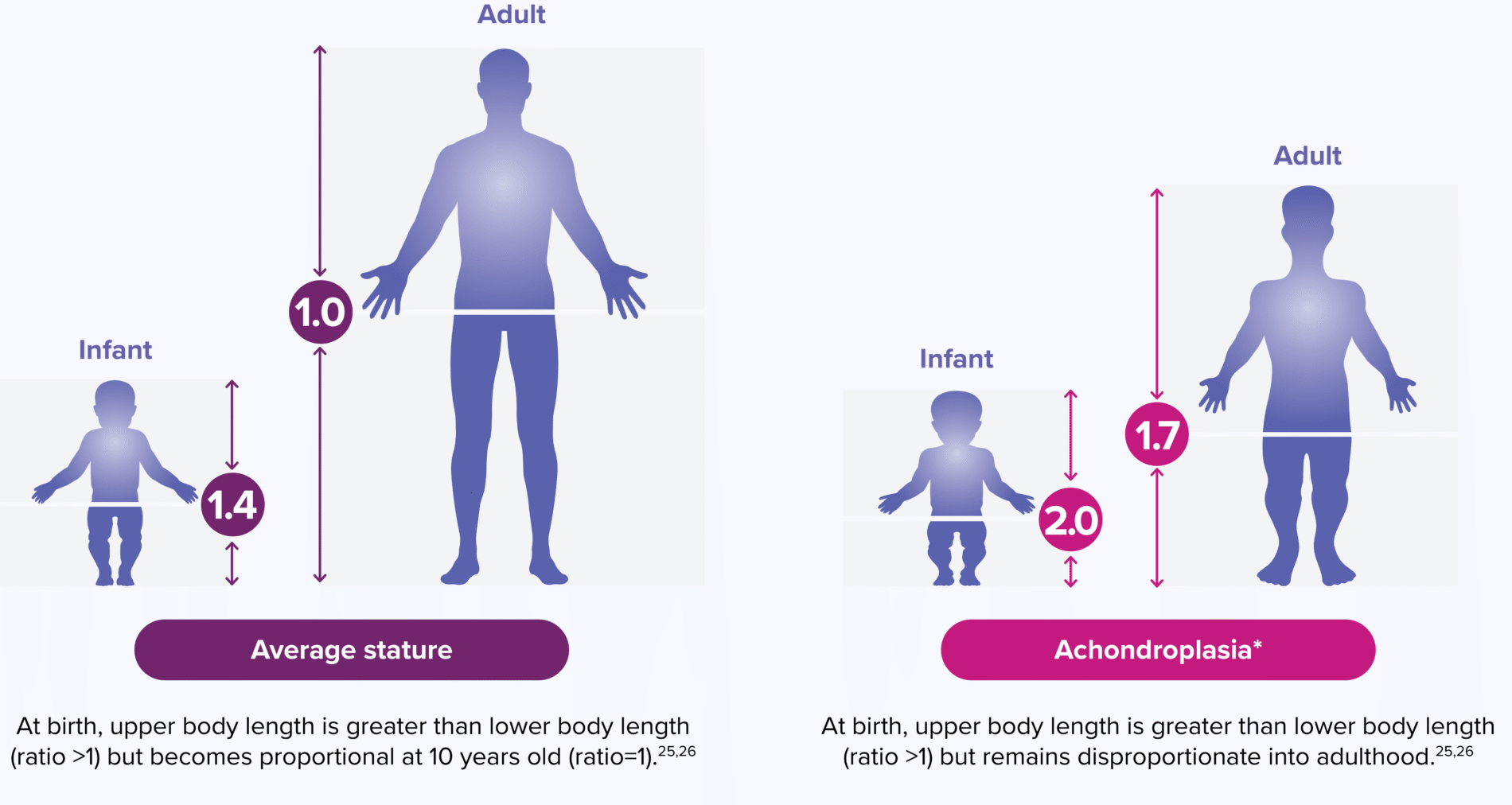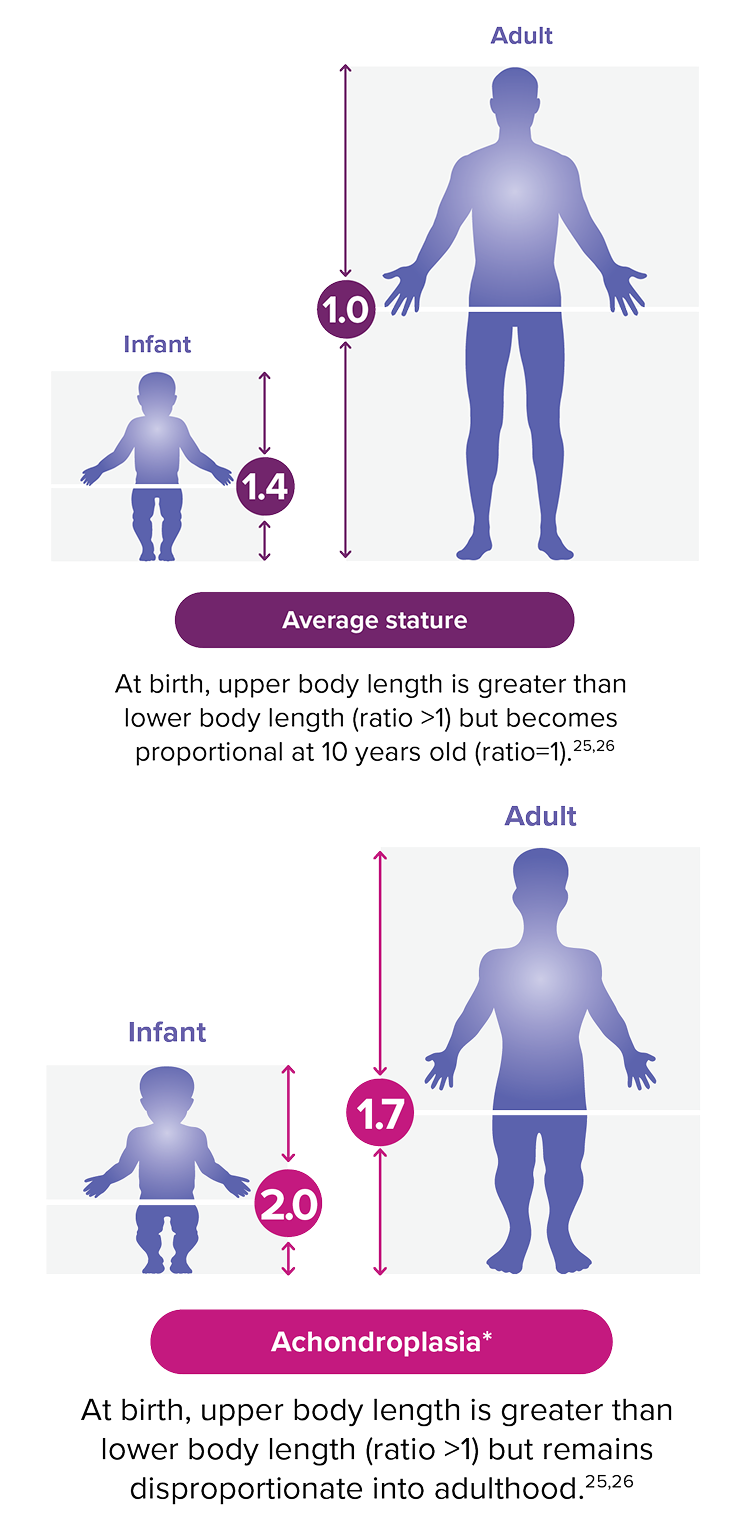 *Ratios represent the 50th percentile of children with achondroplasia.25,26