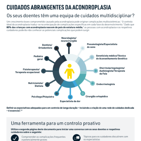 Ouça os especialistas a descreverem as complicações da acondroplasia ao longo do tempo e o respetivo controlo através do modelo da equipa multidisciplinar